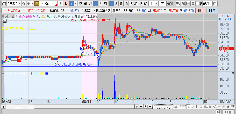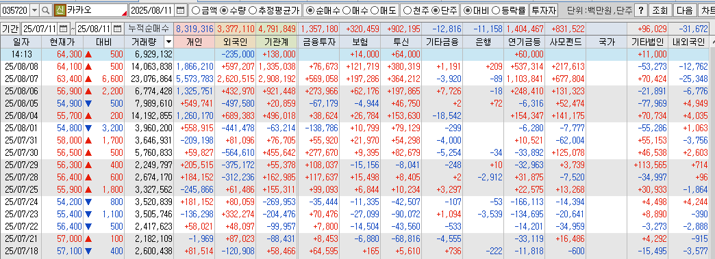 전일 외국인 기관 양매수..신고가 근처까지 갈수 있을것같아..대체에서 분할 매수.. 후... 힘이 없어.. 매수단가에... 매도..