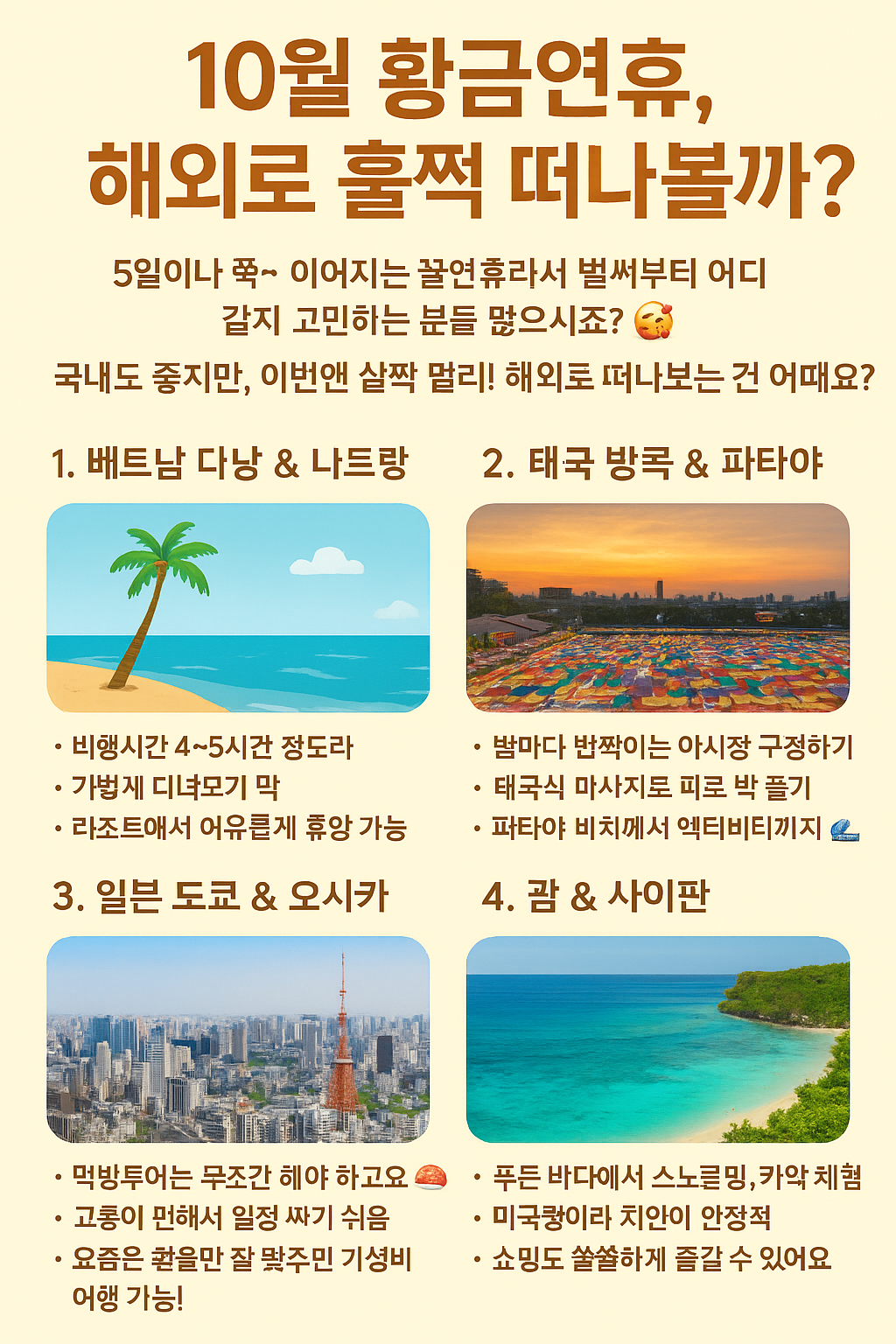 ✈️ 10월 황금연휴, 해외로 훌쩍 떠나볼까?