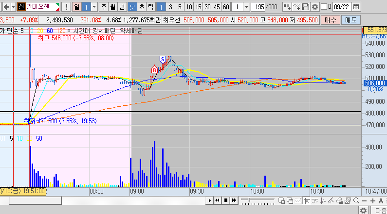 전이 뉴스 아침에 등락률상위 오늘 바이주가 초반에 강세라 오늘 대장주로 갈수 있을것 같아 매수 전고 돌파로 매수