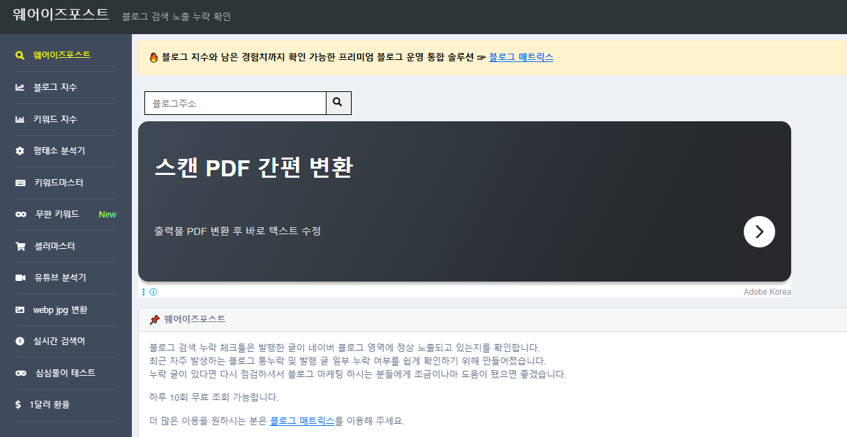 즉, 상위노출 확률이 높은 키워드를 쉽게 골라주는 분석 툴이에요.