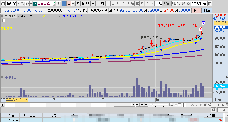 로봇주 테마가 강세여서 상승률 로보티즈 종가베팅 기관수급이좋아 들어감..다행히 아침에 늦게 봐서 매도 보고 있었다면 3프로정에서 손절해었야함. 원칙되등 다행히 재수로 매도함..