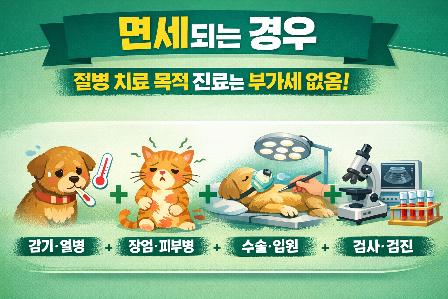 즉, “아파서 치료하는 행위”는 사람 병원처럼 면세예요.