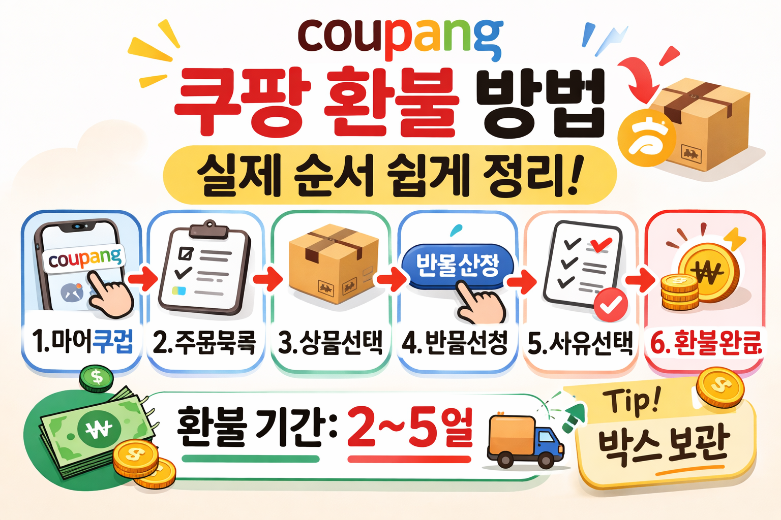 온라인 쇼핑을 하다 보면 사이즈가 맞지 않거나 상품이 마음에 들지 않아 환불을 해야 하는 경우가 많습니다. 아래는 **쿠팡 환불 방법을 실제 진행 순서대로 쉽게 정리한 내용입니다.