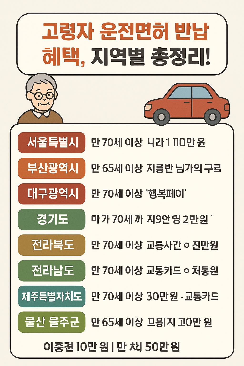 🧓 고령자 운전면허 반납 혜택, 지역별 총정리! 🚗✨