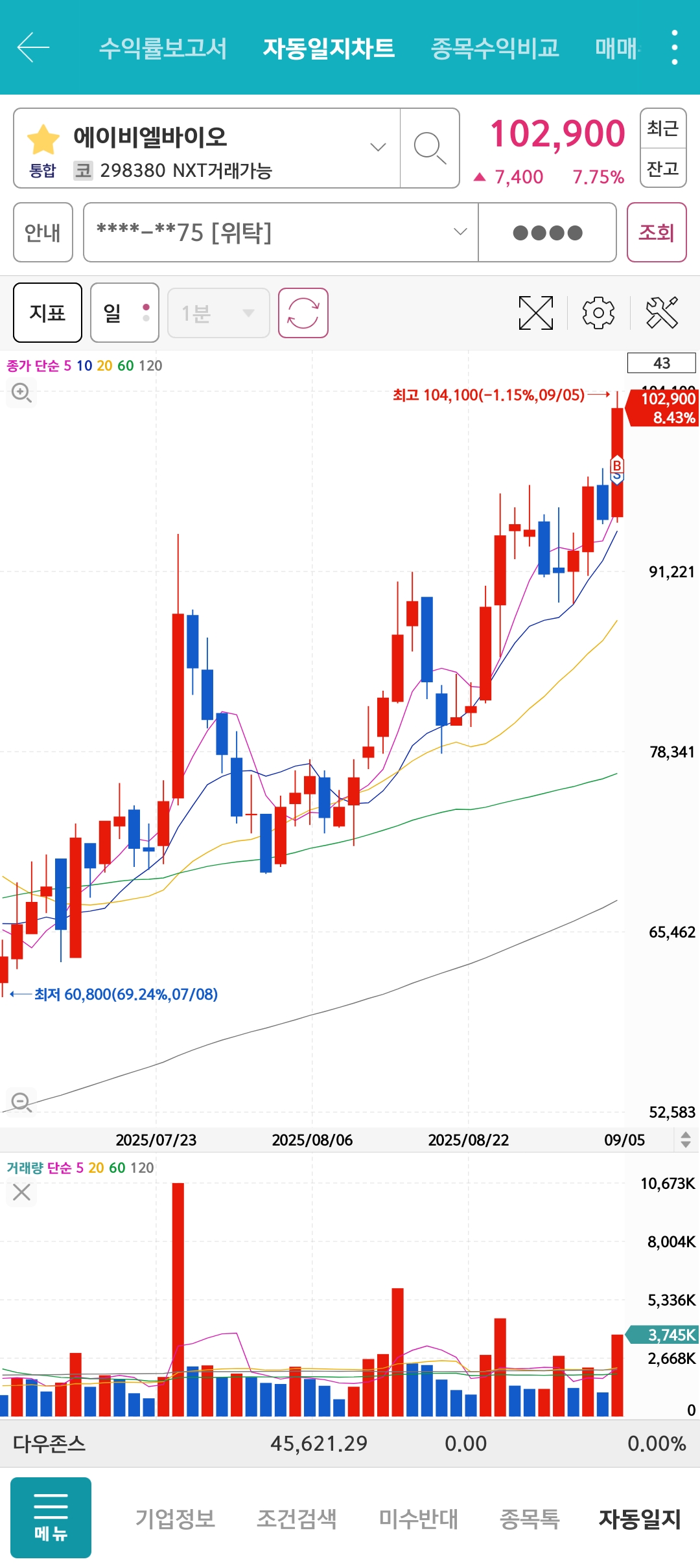 전일 바이오수 강세라 대체후 본장에 시가 전고돌파로 매수 기관수급